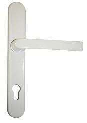 • Exterior front door lever handle on a long plate, powder-coated/galvanized aluminium